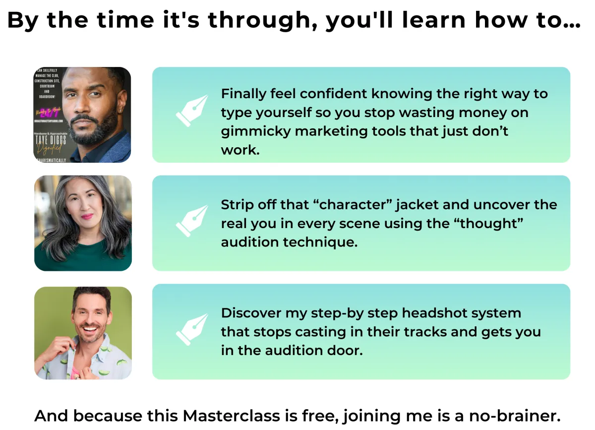 A clear, Castable Brand + Unique Acting Choices that pop on purpose makes Casting’s decision easier, and that’s what turns auditions into callbacks, and callbacks into bookings.